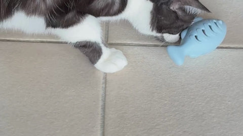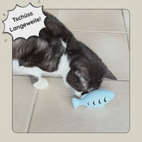 Silicone snack fish for cats – an intelligence toy and feeder to combat boredom.